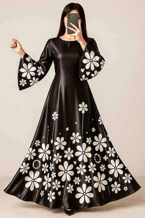 Bold Blossom Silk Maxi-Black & White Floral Pop